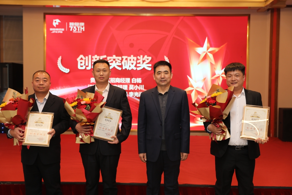 大會對2024年表現優異的省區經理、招商經理、終端經理予以表彰,先后頒發了“創新突破獎”、“業績先鋒獎”、“區域開拓獎”、“精益管理獎”、“戰略執行獎”以及“年度風云人物獎”6個獎項,每一個獎項背后都凝聚著堅守與奮斗,在過去一年中,他們在市場拓展、團隊建設、戰略落地、目標達成、業務發展等方面表現優異。當獲獎者在領導手中接過鮮花和證書時,會場響起陣陣熱烈的掌聲——這是對奮斗者最好的禮贊。