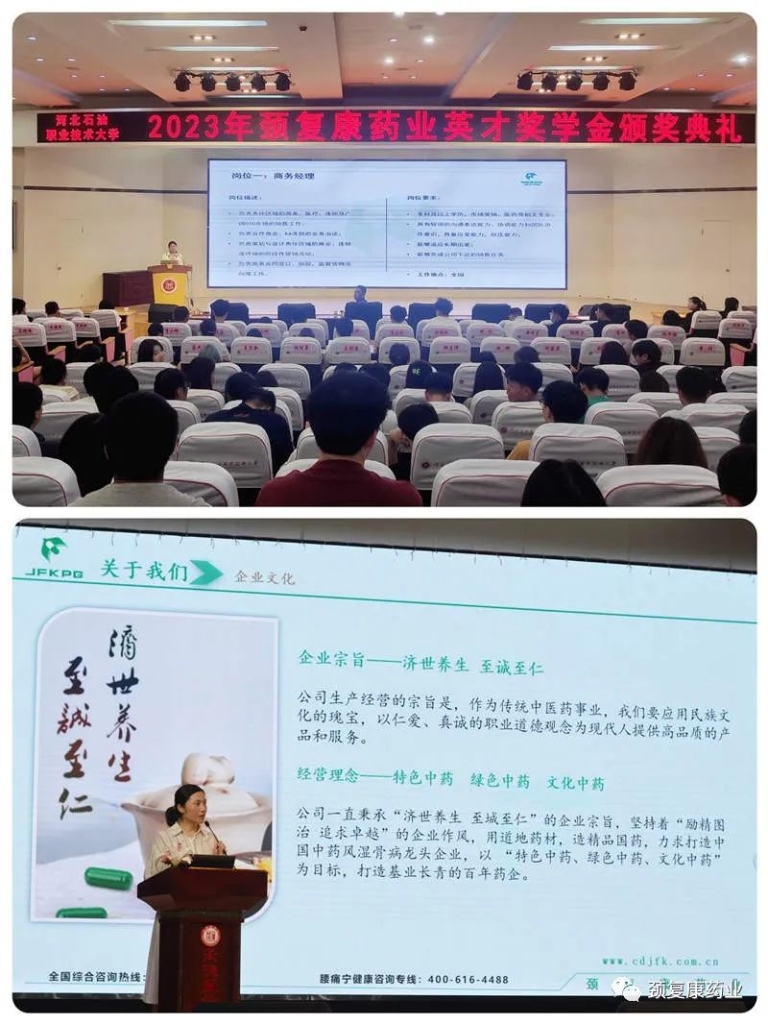 河北石油職業技術大學副校長王少峰、承德護理職業學院副院長崔艷華、承德醫學院副校長張凱,在各自學校的頒獎儀式上,分別對頸復康藥業集團及承德腰痛寧公益基金會多年來對學校人才培養工作的支持與慷慨捐贈表示衷心的感謝,對獲獎學生表示祝賀并提出了殷切希望。