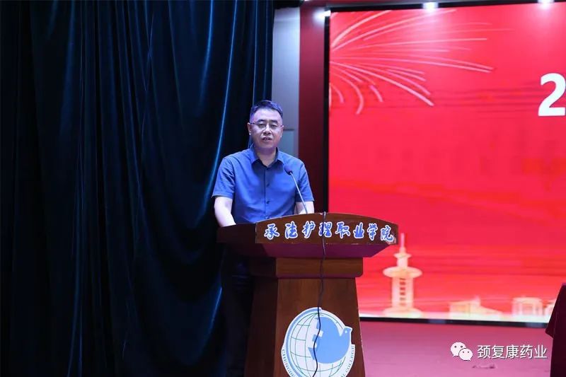 頒獎儀式上,劉井利秘書長簡要介紹了頸復康藥業集團發展現狀及特色,回顧了與各校的校企合作歷程,對同學們提出了殷切希望,希望學生努力學習,把自己塑造成為理想遠大、熱愛祖國、追求真理、勇于創新、腳踏實地的新時代的青年才俊。